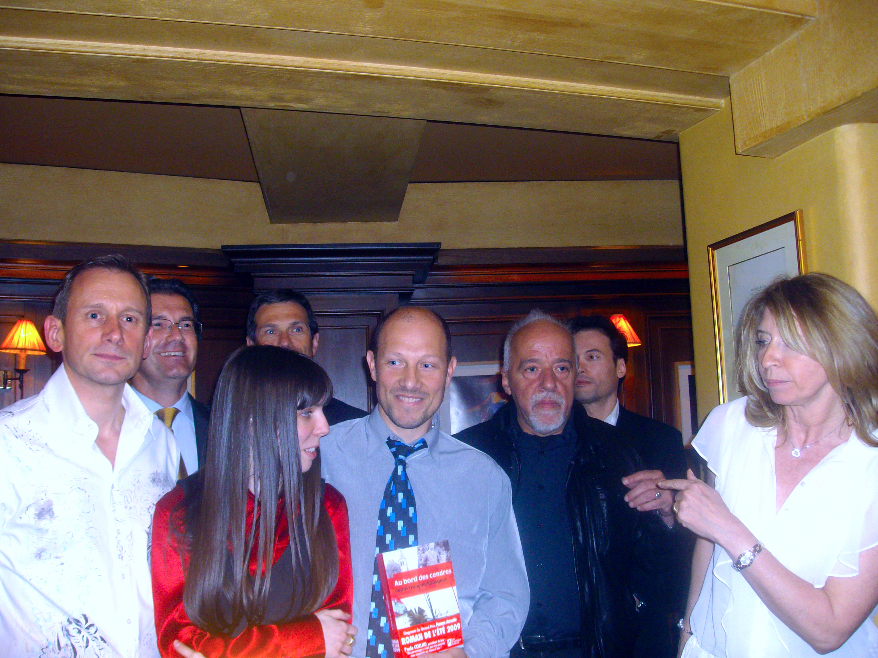 18h45. Après quelques mots de J-L Poitevin et Paulo Coelho, la conférence de Presse commence ; chaque lauréat présente son roman. Alexandra Rossi forge d’une voix précise et tendue d’émotion ses « Lames de Dieu », ouvrage historique qui a pour fond la période des Croisades ; Yves-Daniel Crouzet dompte superbement les démons de la peur d’une voix tranquille, posée, étonnamment assurée, et nous voilà presque déjà hantés par ses « Fantômes de Panassa », un polar pour nos nuits blanches dans le Pays Noir de Saint-Étienne ; puis moi-même, voyage dans le temps « Au bord des cendres » et sous la France occupée…