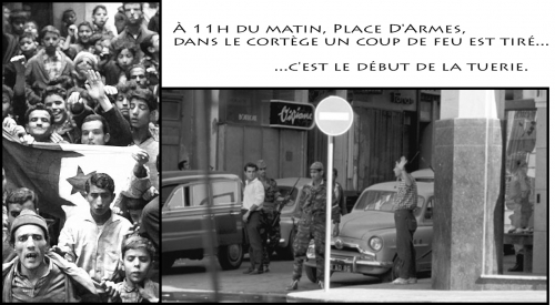 Alors que je sors du mess où j’ai pris mon déjeuner en compagnie d’autres officiers, je suis témoin, place d’Armes, de scènes complètement surréalistes. Un grand nombre d’Européens sont violemment pris à partie par des musulmans en furie qui s’acharnent sur eux en les brutalisant, et pour certains en les tabassant à coup de matraque. Des femmes et des enfants figurent déjà parmi les victimes. C’est ahurissant. Un véritable lynchage d’une sauvagerie innommable. Totalement impuissant mais convaincu qu’il faut agir, je retourne immédiatement au mess pour informer mes collègues officiers, et demander à notre commandant – l’adjoint du général Katz – l’intervention d’une troupe pour faire cesser ce massacre.